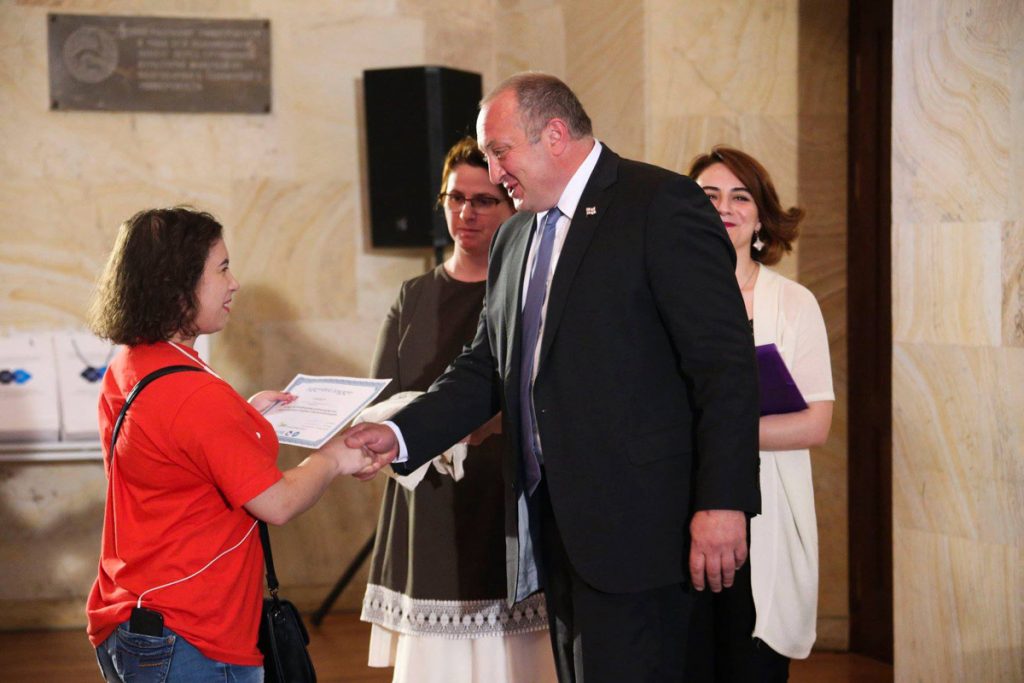 სტუდენტებს ჯილდოები საქართველოს პრეზიდენტმა გადასცა. ღონისძიებაზე განათლების მინისტრის მოადგილე ლია გიგაური, შერიგებისა და სამოქალქო თანასწორობის საკითხებში მინისტრი ქეთევან ციხელაშვილი, უნივერსიტეტის პროფესორები და სტუდენტები იყვნენ მიწვეულნი.