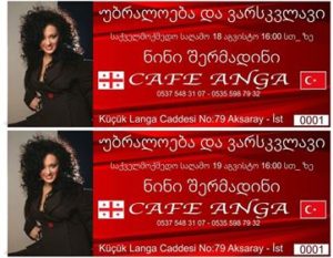 ცნობილი ქართველი მომღერალი 18-19 აგვისტოს სტამბოლს ეწვევა და თავად ემიგრანტობის გამოცდილების მქონე ვარსკვლავი ემიგრანტებს გაახარებს. როგორც ღონისძიების ორგანიზატორი აცხადებს ნინი შერმადინის მიწვევა პატარა ელენე დუბაძის მხარდაჭერის სურვილმა გააბედინათ : ,, ვიცოდიდით რომ ნინი გამორჩეული ადამიანი იყო მაგრამ მინდა გითხრათ მისმა სითბომ და თავმდაბლობამ, მისმა ადამიანურმა და კეთილშობილებამ ყოველგვარ მოლოდინს გადააჭარბა, ჩვენ ამ საქველმოქმედო საღამოს ქართველებისთვის ხშირ თავშეყრის უბან აქსარაიაში მოკრძალებულ კაფე “ანგაში” ვატარებთ და სწორედ ეს გამოარჩევს ნინის, რომ მან უარი არ განაცხადა და ყველანი ბედნიერები ვართ რომ შევძლებთ ერთად დავეხმაროთ პატარა ელენეს.”
