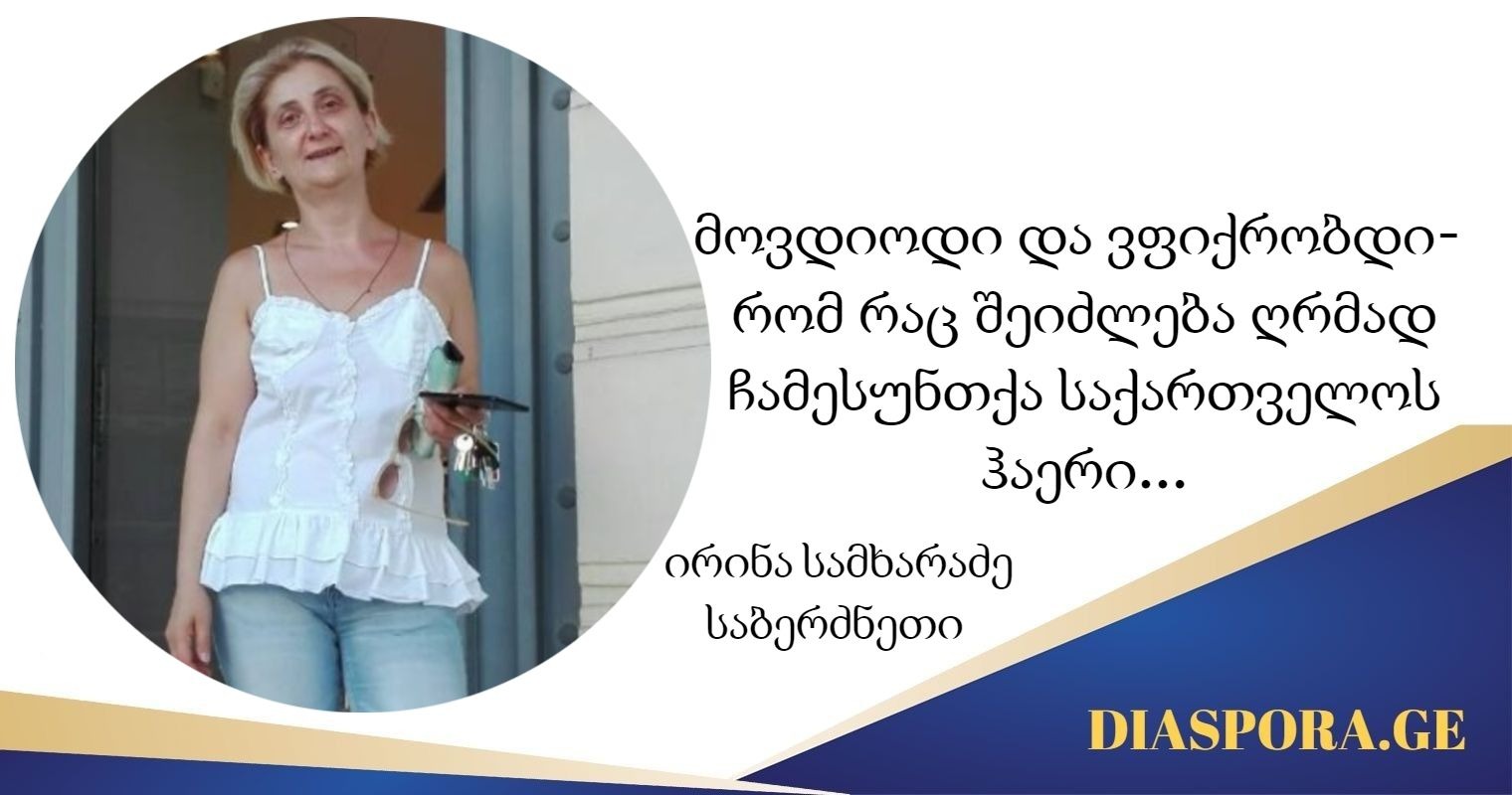DIASPORA.GE- ს ახალი პროექტის ,,მხოლოდ ემიგრანტის პასუხების” დღევანდელი სტუმარი ათენში მცხოვრები ემიგრანტი ირინა სამხარაძეა, ერთი რამ რაც ცხოვრებაში ძალიან მაბედნიერებს- ეს არის ჩემი ძალიან ძალიან კარგი, კეთილშობილი და უკარგესი შვილები თავის მონაგრით – ამბობს ის და დიდი ენთუზიზმით ერთვება ჩვენს ახალ პროექტში მაშ ასე მოვუსმინოთ ირინა სამხარაძის პასუხებს: