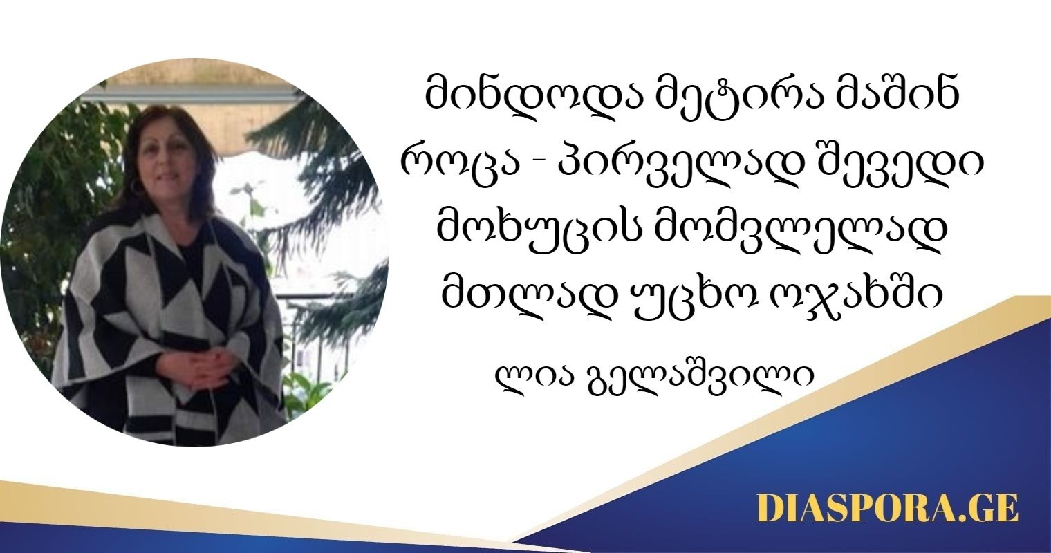 DIASPORA.GE- ს ახალი პროექტის ,,მხოლოდ ემიგრანტის პასუხების” დღევანდელი სტუმარი ემიგრანტობის 23 წლიანი ცხოვრების გამოცდილების ჩვენი თანამემამულე ლია გელაშვილია, რომლის ცხოვრების ოცნებად მონატრებულ ოჯახთან ერთად ცხოვრება ქცეულა… მოდით მოვუსმინოთ ლია გელაშვილის ძალიან გულწრფელ და დამაფირებელ პასუხებს:
