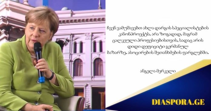 „გარდა ამისა, გერმანული ენის ხელშეწყობა, უმაღლესი განათლების მიღება იმ დონეზე, რათა ათვისებული და გაძლიერებულ იქნას გერმანიაში აღიარებული პროფესიული ხელობა. ეს არის ძალიან რთული. რასაც ადამიანები სწავლობენ და ითვისებენ, ამის გამოყენება უნდა შეეძლოთ ისევ და ისევ გერმანიაში ლეგალურად. ვფიქრობ, საქართველოს სწორ ადგილზეა“, – განაცხადა ანგელა მერკელმა.