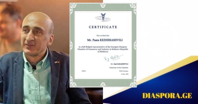 მოლდოვაში ქართული დიასპორის სავაჭრო-სამრეწველო პალატის სრულუფლებიან წარმომადგენელად პაატა კეჟერაშვილი დაინიშნა