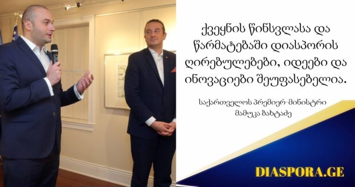 ,,ქართული ენის შენარჩუნება ჩვენს დიასპორაში უდიდესი საქმეა და ეს საკითხი 2019 წელს გაცილებით მაღალ პრიორიტეტში იქნება წარმოდგენილი. განათლების რეფორმის მთავარი პუნქტია სწორედ ქართული ენის პოპულარიზაცია და შენარჩუნება ჩვენს დიასპორაში. ამ კუთხით ძალიან მნიშვნელოვანი რესურსი უკვე ჩაიდო მომავალი წლის ბიუჯეტის პროექტში. მინდა, ვისარგებლო შემთხვევით და თითოეულ თქვენგანს, ვინც ამ დიდ საქმეს აკეთებს, დიდი მადლობა გადაგიხადოთ”, – განაცხადა  პრემიერმა დიასპორის წარმომადგენლებთან შეხვედრისას აშშ-ში ვიზიტისას.