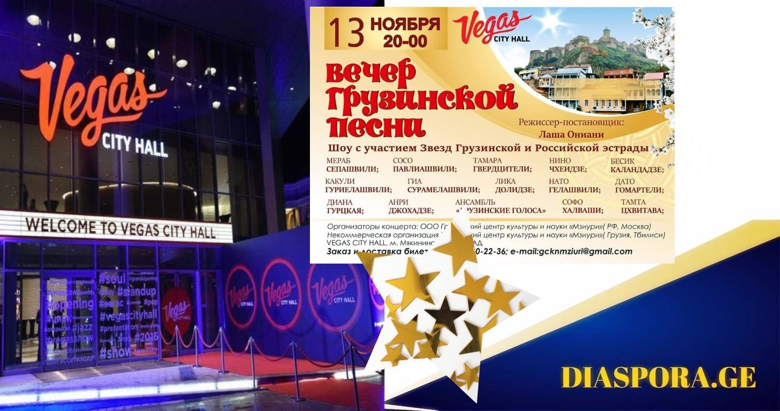 ხოლო VEGAS SITY HALL -ში ქართული სიმღერის საღამოს დაამშვენებს რუსეთში მოღვაწე ქართველი ვარსკვლავი დიანა ღურწკაია.