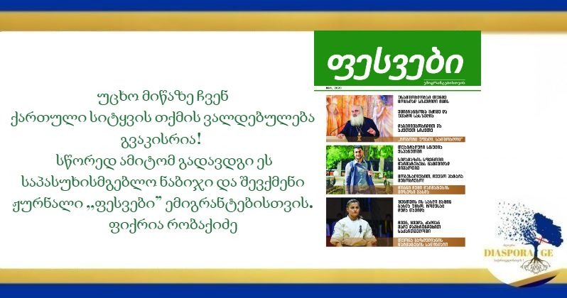თხოვნით. შეიტანე შენი წვლილი ამ დიდი საქმეში. რათა ღრმად გავიდგათ ფევები, უცხო მიწაზე ერთად ვაშენოთ ქართული მომავალი.