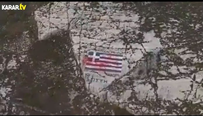 თურქული არხის KARAR TV-ის ცნობით, რომელმაც დრონის კადრებიც გამოაქვეყნა, დამნაშაეებმა 100 კილო წითელი საღებავით დასვარეს საბერძნეთის დროშა, რომელიც კუნძულის მარჯვენა მხარეს არის მოთავსებული.